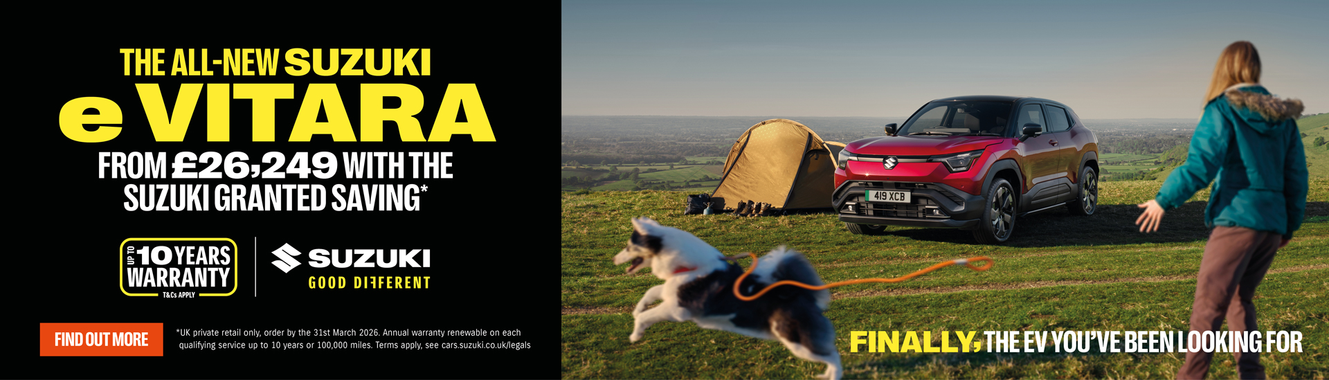 Meet the all-new e Vitara – a capable electric SUV designed to impress. With optional ALLGRIP-e 4-wheel drive and an impressive level of tech and safety features as standard, it might just be the EV you’ve been looking for. Best of all, it’s backed up by our warranty of up to 10 years*.