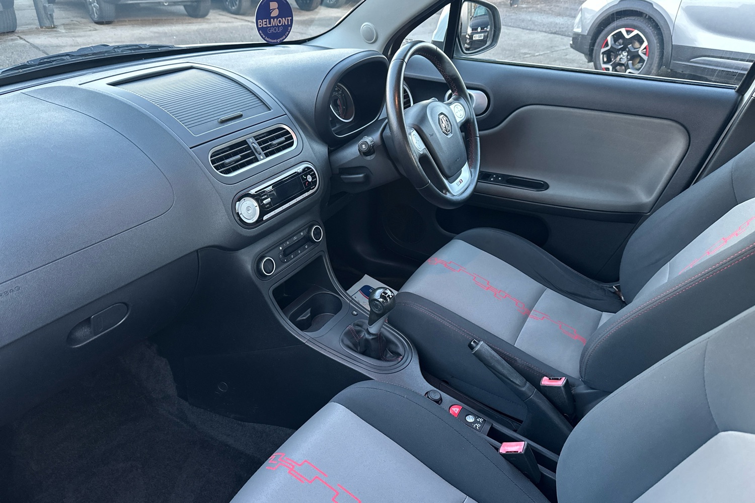 • Red stitching on steering wheel