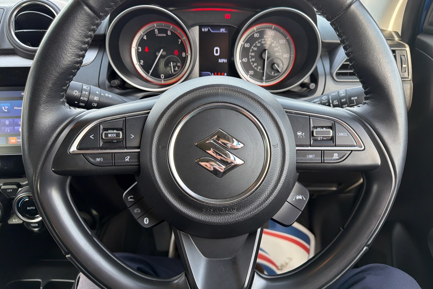 • 3 spoke leather covered steering wheel